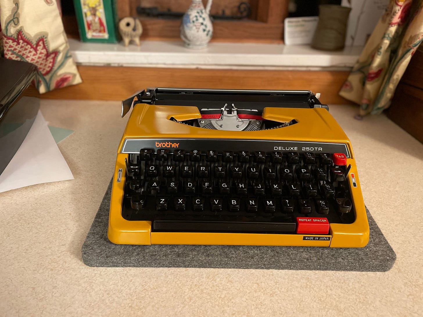Buying this typewriter might just be the midlife crisis of a grumpy man who has no aspirations to own a bright red Ferrari, but instead dreams of spending the weekend taking his mustard yellow 1970s Brother Deluxe 250TR out for a spin. But for me it feels like the continuation of something bigger, something wider. A continuation of the scythe my wife gave me for my birthday last year, or the screenless camera I take with me everywhere now, or the stories that percolate within me waiting to be told.